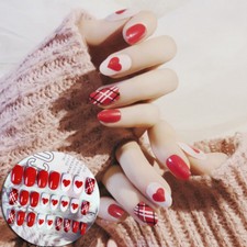 for "Short Red Acrylic Nails - Red Heart Acrylic Nail Tips Short False Nails Art Fingernails 24pcs Set Lu For Sale Online Ebay : Add some small rhinestones to your solid colored nails."